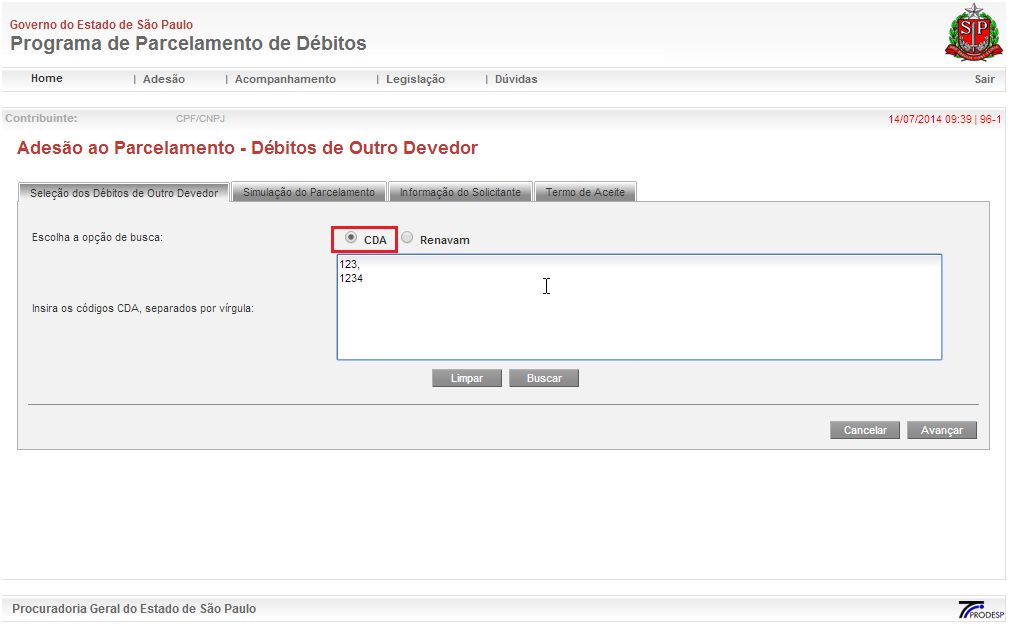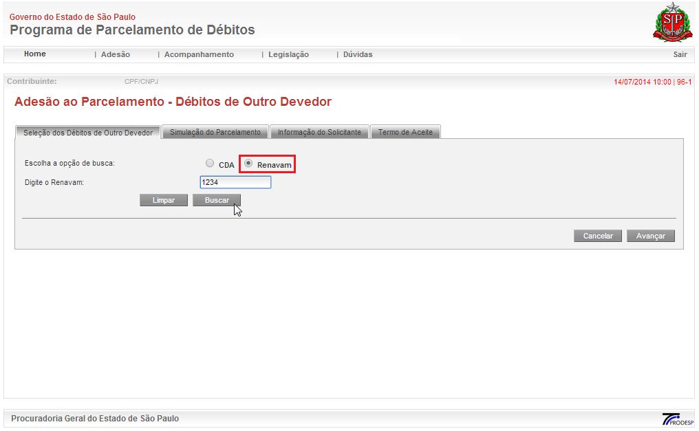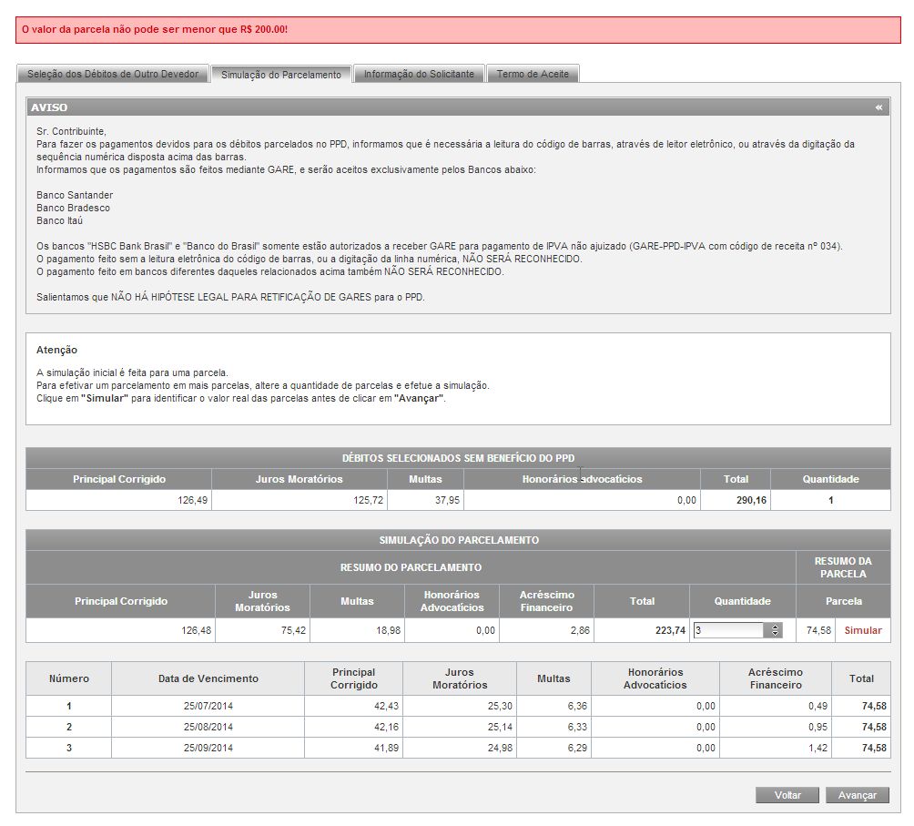 Acessando o sítio do PPD/2014, o interessado poderá visualizar seus débitos, selecionar aqueles que deseja pagar/parcelar, simular parcelamentos e emitir a guia de recolhimento da primeira parcela ou parcela única.