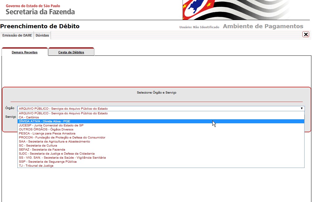 Selecionar DÍVIDA ATIVA - Dívida Ativa – PGE