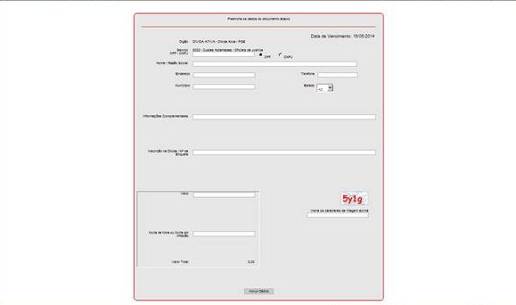 no sistema. A GARE dentro do termo de aceite mostrará os dados do devedor principal do débito.